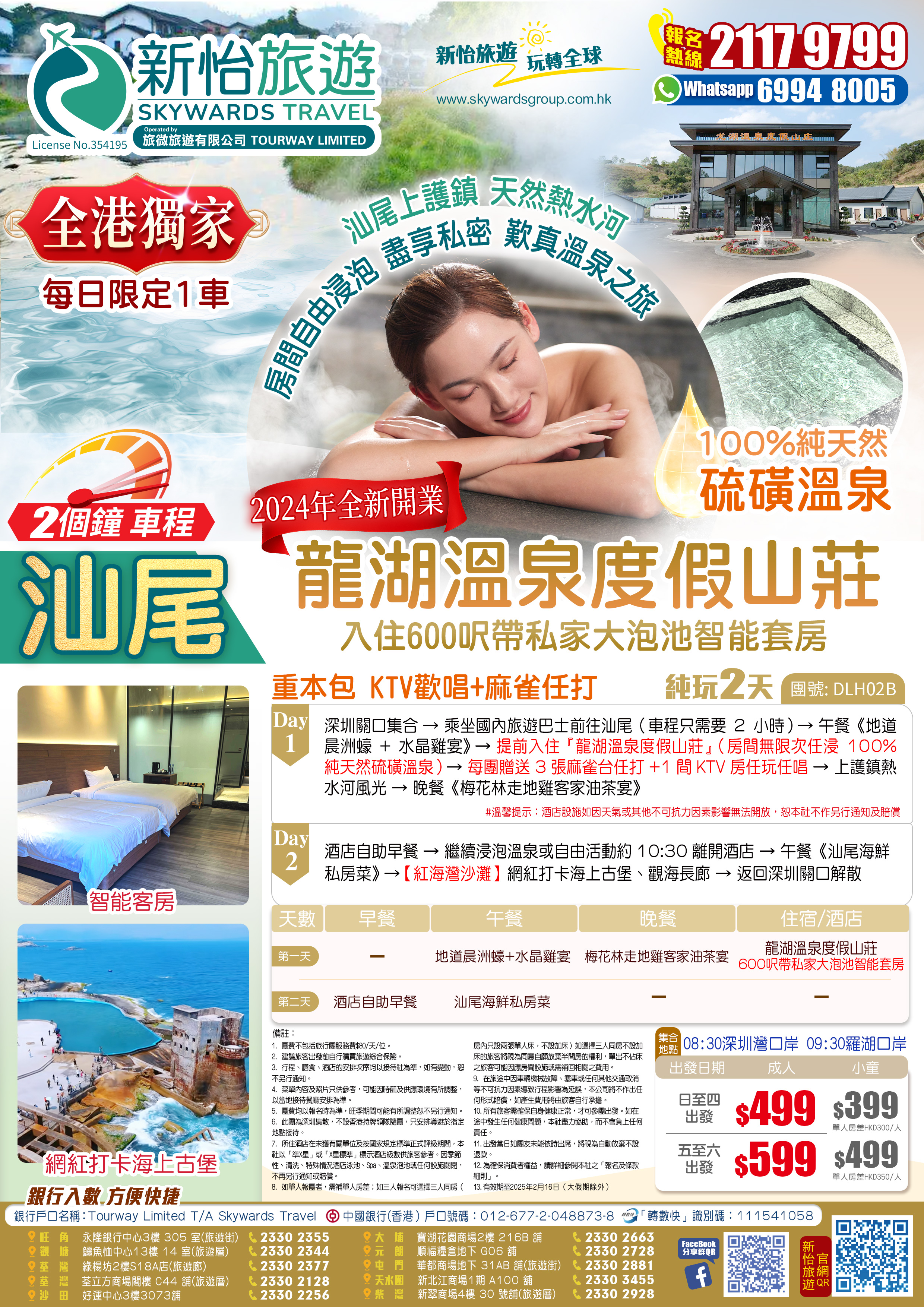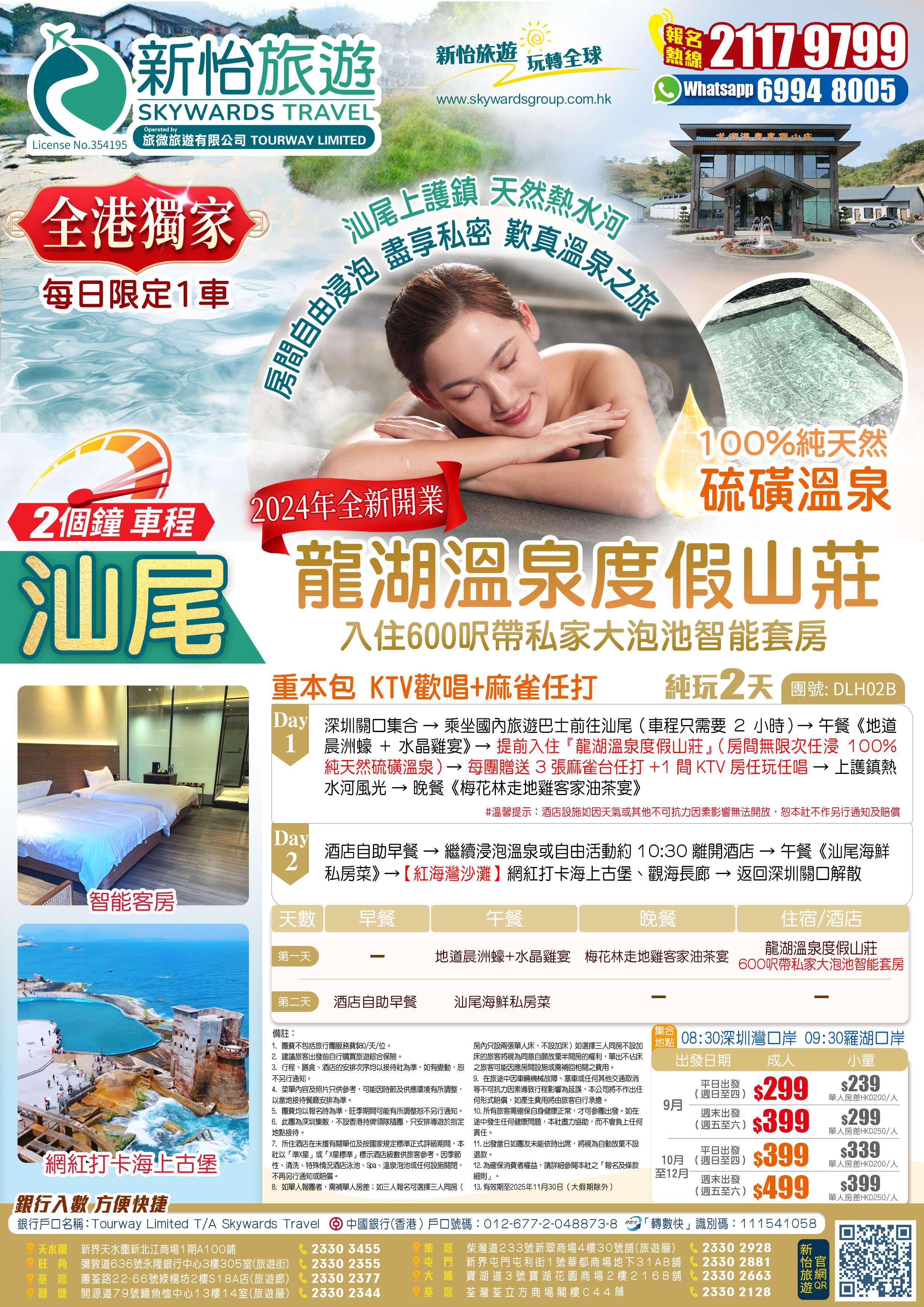 【全港獨家】舌尖上的汕尾 汕尾上護鎮熱水河 100% 純天然<硫磺溫泉> 2024年全新開業【龍湖溫泉度假山莊】600呎帶私家大泡池智能套房 盡享私密歎真溫泉之旅 品《梅花林走地雞客家油茶宴》《地道晨洲蠔+水晶雞宴》 純玩2天團