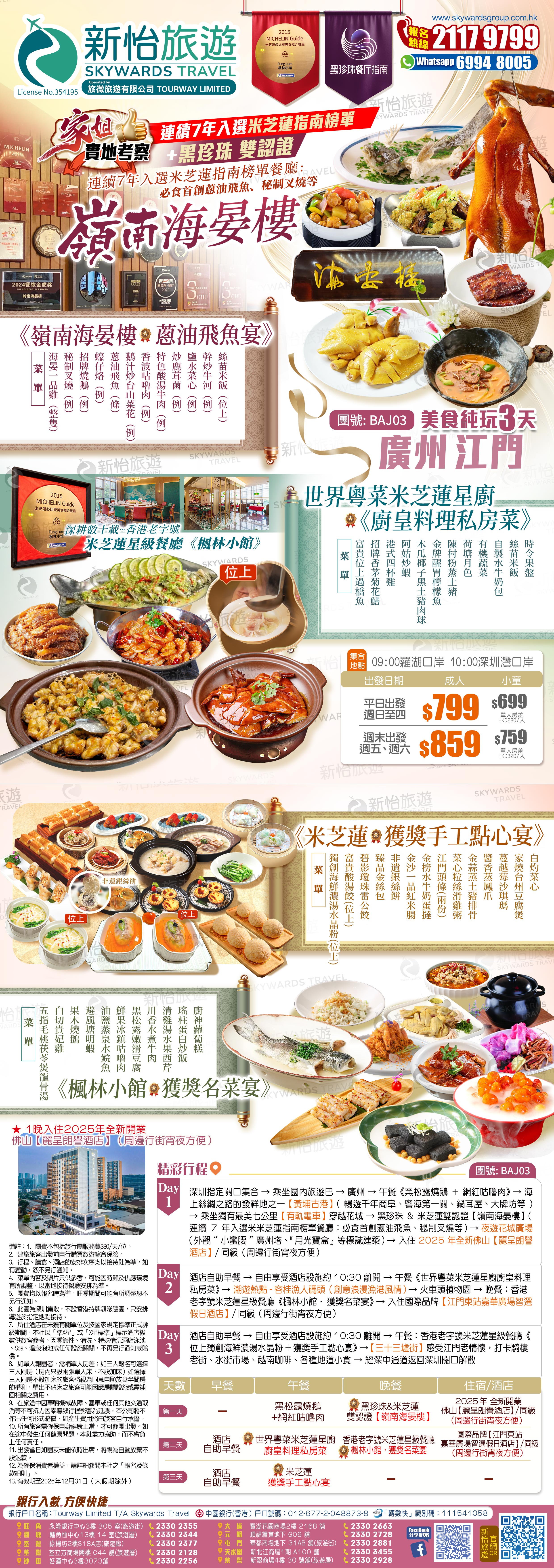 黑珍珠&米芝蓮雙認證【嶺南海宴樓】、世界粵菜米芝蓮星廚廚皇料理私房菜 香港老字號米芝蓮星級餐廳《楓林小館·獲獎名菜宴》《位上獨創海鮮濃湯水晶粉+獲獎手工點心宴》 純玩3天