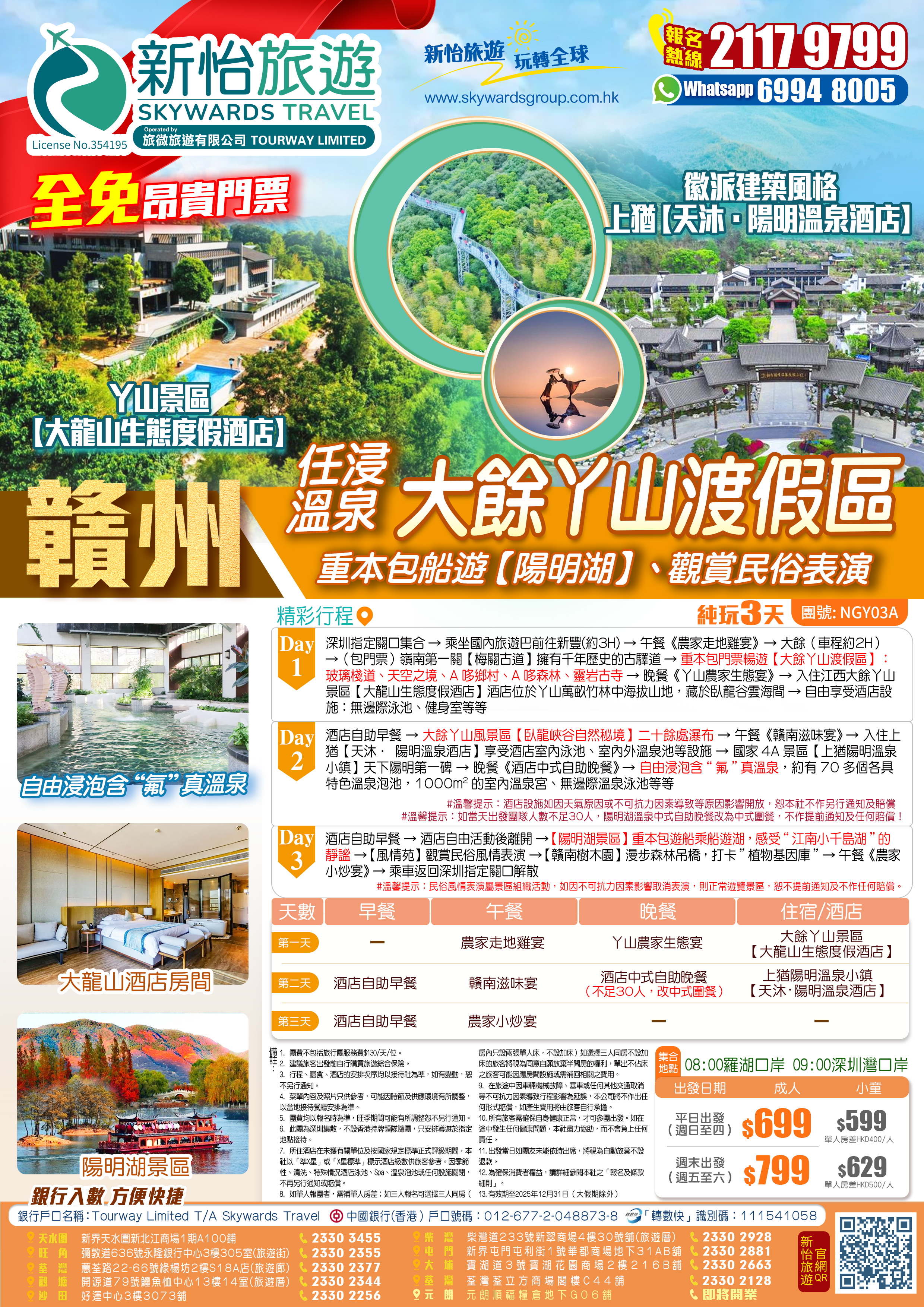 【全免昂貴門票】 任浸含“氟”真溫泉,約有70多個各具特色溫泉泡池 贛南生態名片「大餘丫山渡假區」重本包船遊【陽明湖景區】 嘆兩晚景區內渡假酒店 大餘丫山【大龍山生態度假酒店】+上猶【天沐·陽明溫泉酒店】純玩3天