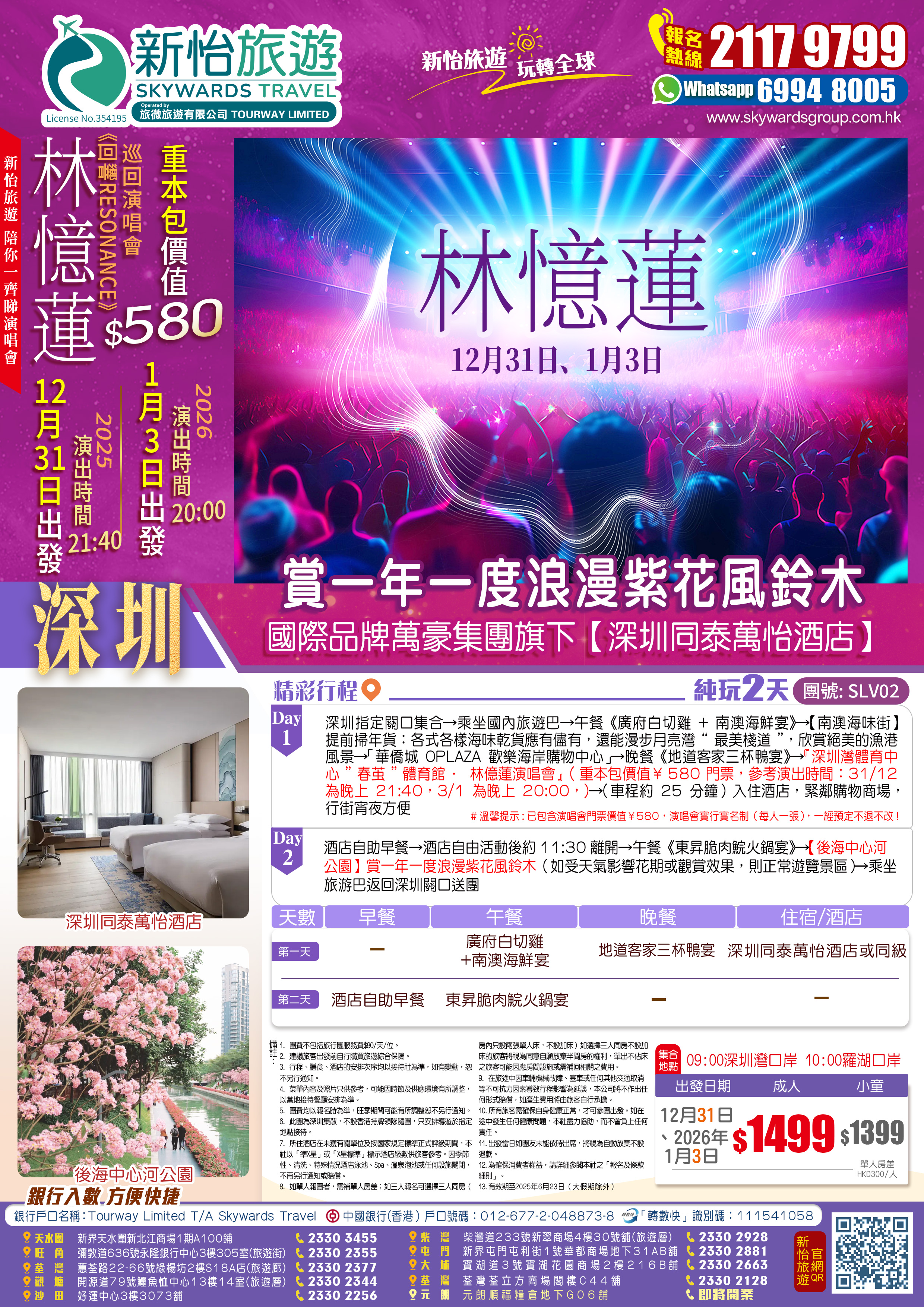 【僅辦一期】 【林億蓮演唱會·深圳站】 重本包價值¥580門票 賞一年一度浪漫紫花風鈴木 純玩2天