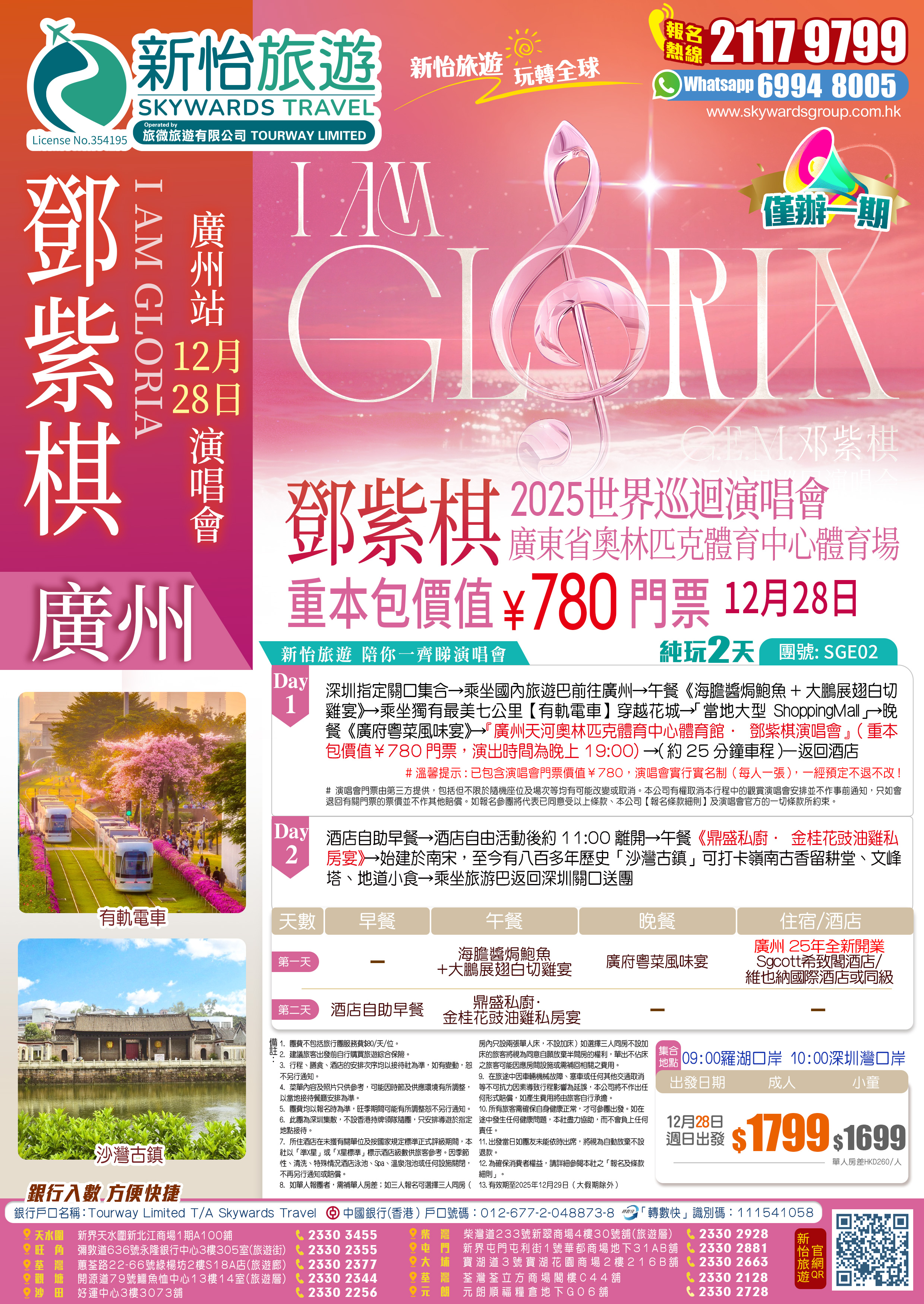 【僅辦一期】G.E.M鄧紫棋【I AM GLORIA世界巡回演唱會2.0—廣州站】 重本包價值¥780門票 純玩2天