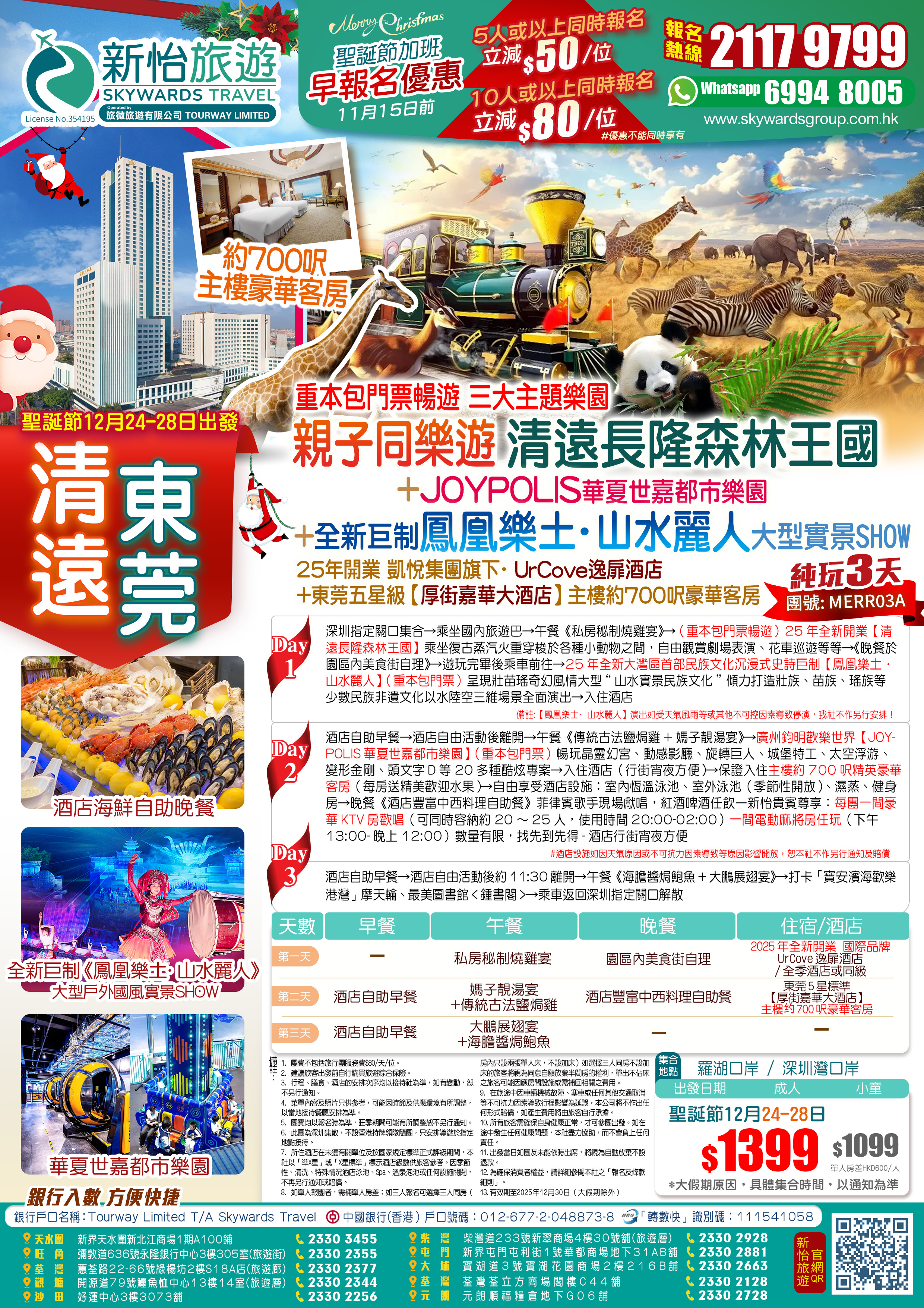 【聖誕加班】親子同樂遊25年全新開業「清遠長隆森林王國」+夜賞「全新巨制《鳳凰樂土·山水麗人》大型實景SHOW」+ 亞洲室內超級樂園「JOYPOLIS華夏世嘉都市樂園」純玩3天