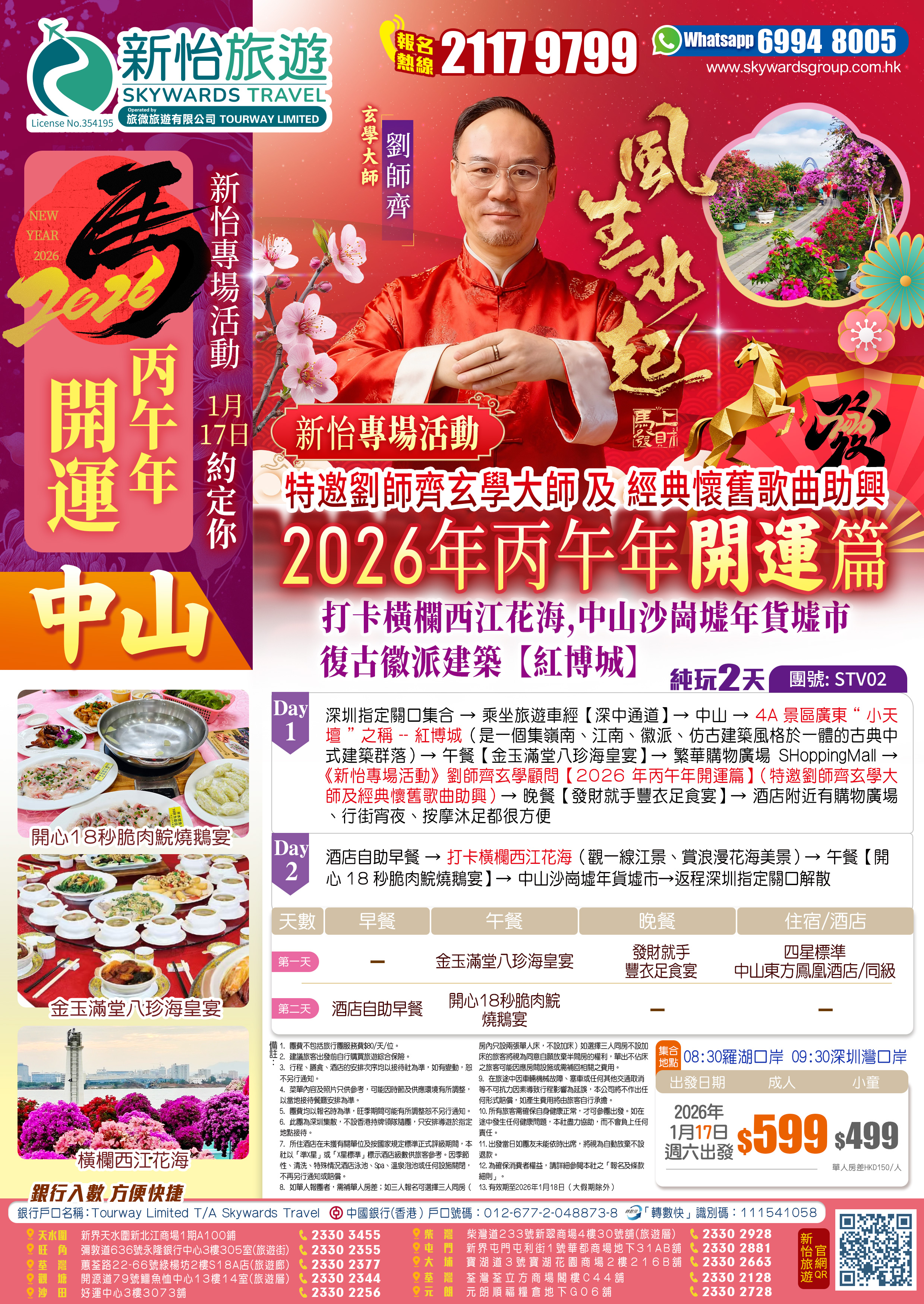 《新怡專場活動》劉師齊玄學大師【2026年丙午年開運篇】打卡橫欄西江花海、復古徽派建築【紅博城】純玩2天
