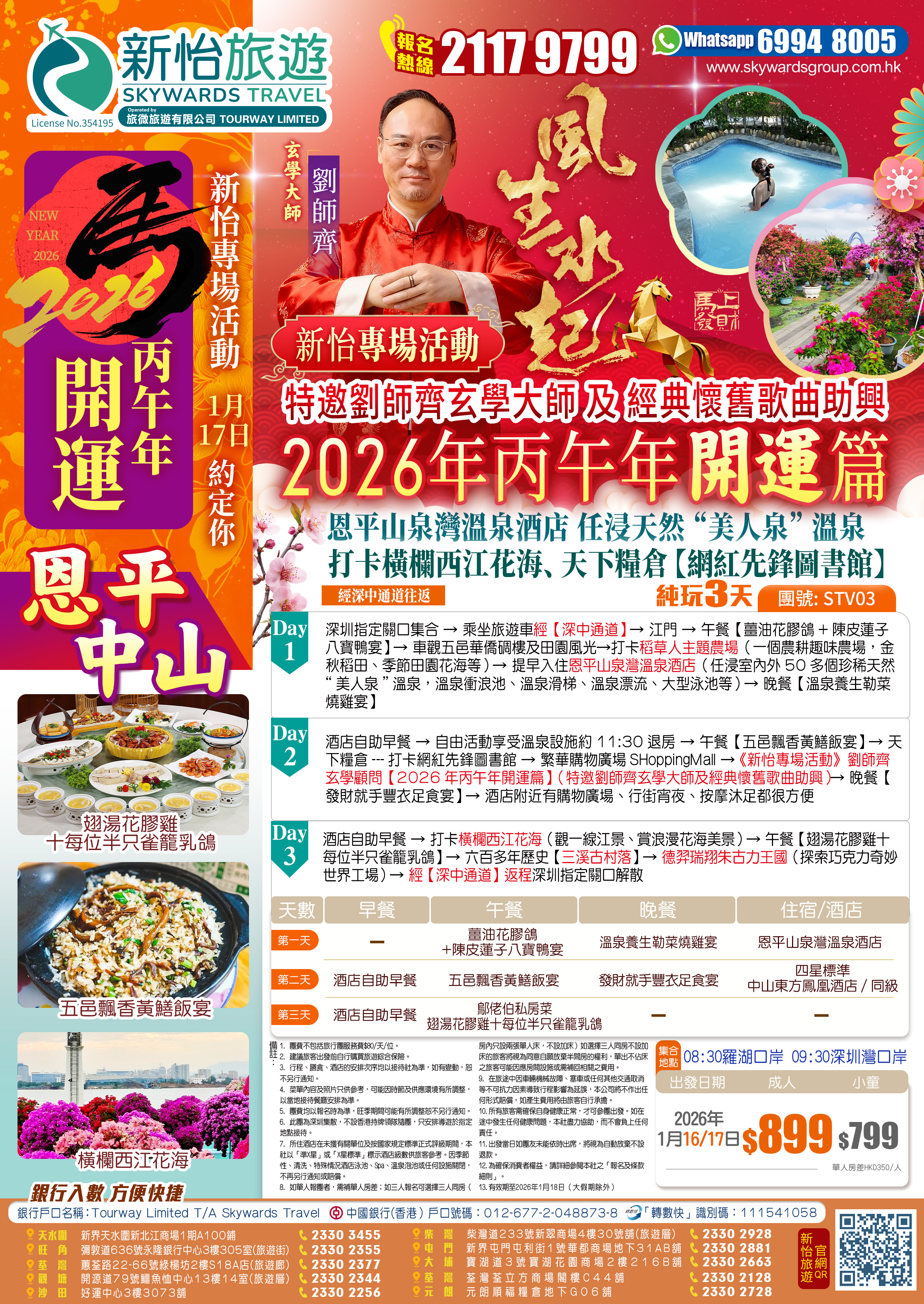 《新怡專場活動》劉師齊玄學大師【2026年丙午年開運篇】恩平山泉灣溫泉酒店 任浸天然“美人泉”溫泉打卡橫欄西江花海、天下糧倉【網紅先鋒圖書館】純玩3天