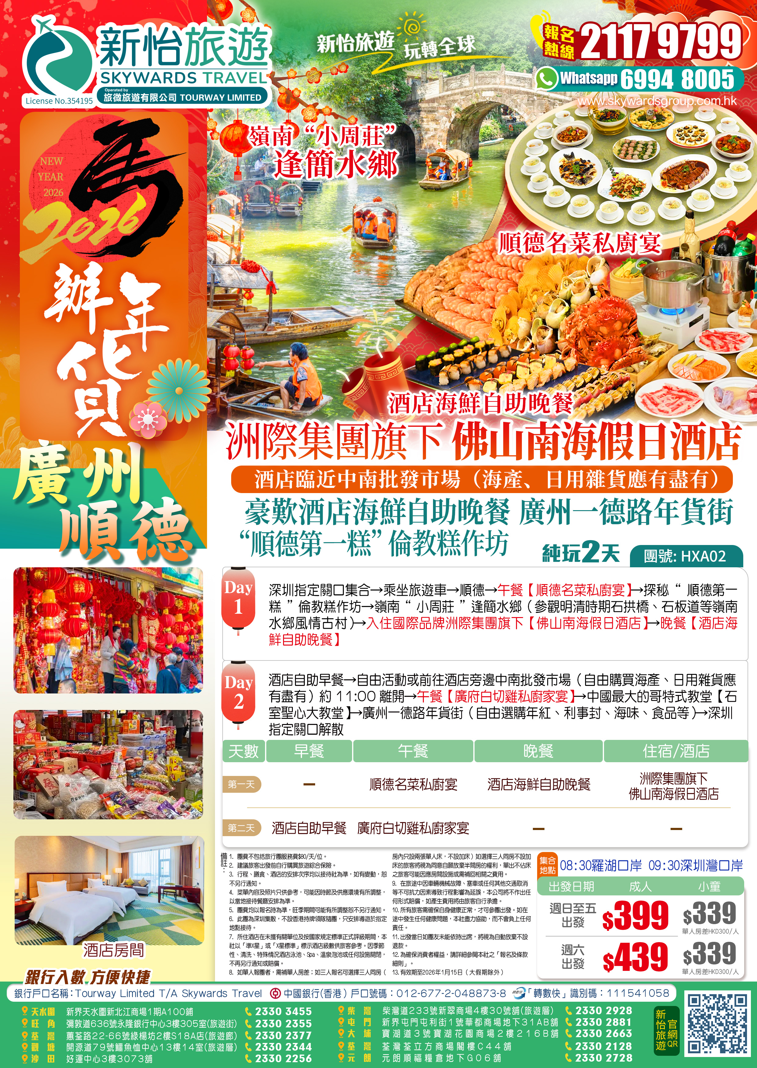 廣州一德路年貨街洲際集團旗下【佛山南海假日酒店】豪歎【酒店海鮮自助晚餐】逢簡水鄉、倫教糕作坊純玩2天