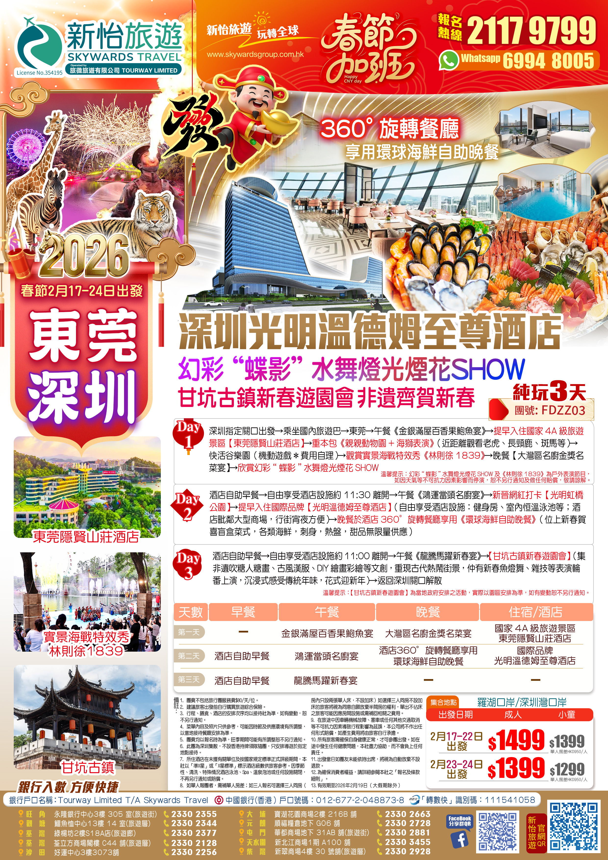 國家4A級旅遊景區【東莞隱賢山莊】重本包《親親動物園+海獅表演》 幻彩“蝶影”水舞燈光煙花SHOW 【甘坑古鎮新春遊園會】非遺齊賀新春 奢華享受 國際品牌【深圳光明溫德姆至尊酒店】360°旋轉餐廳享用環球海鮮自助晚餐 純玩3天