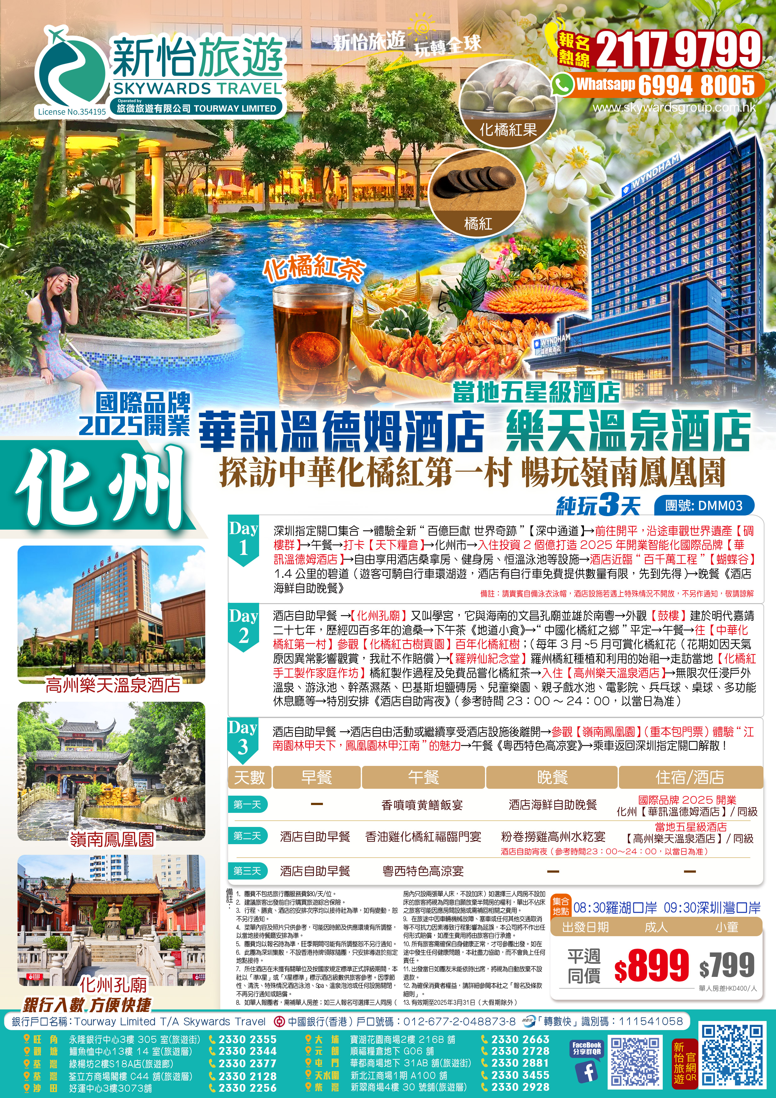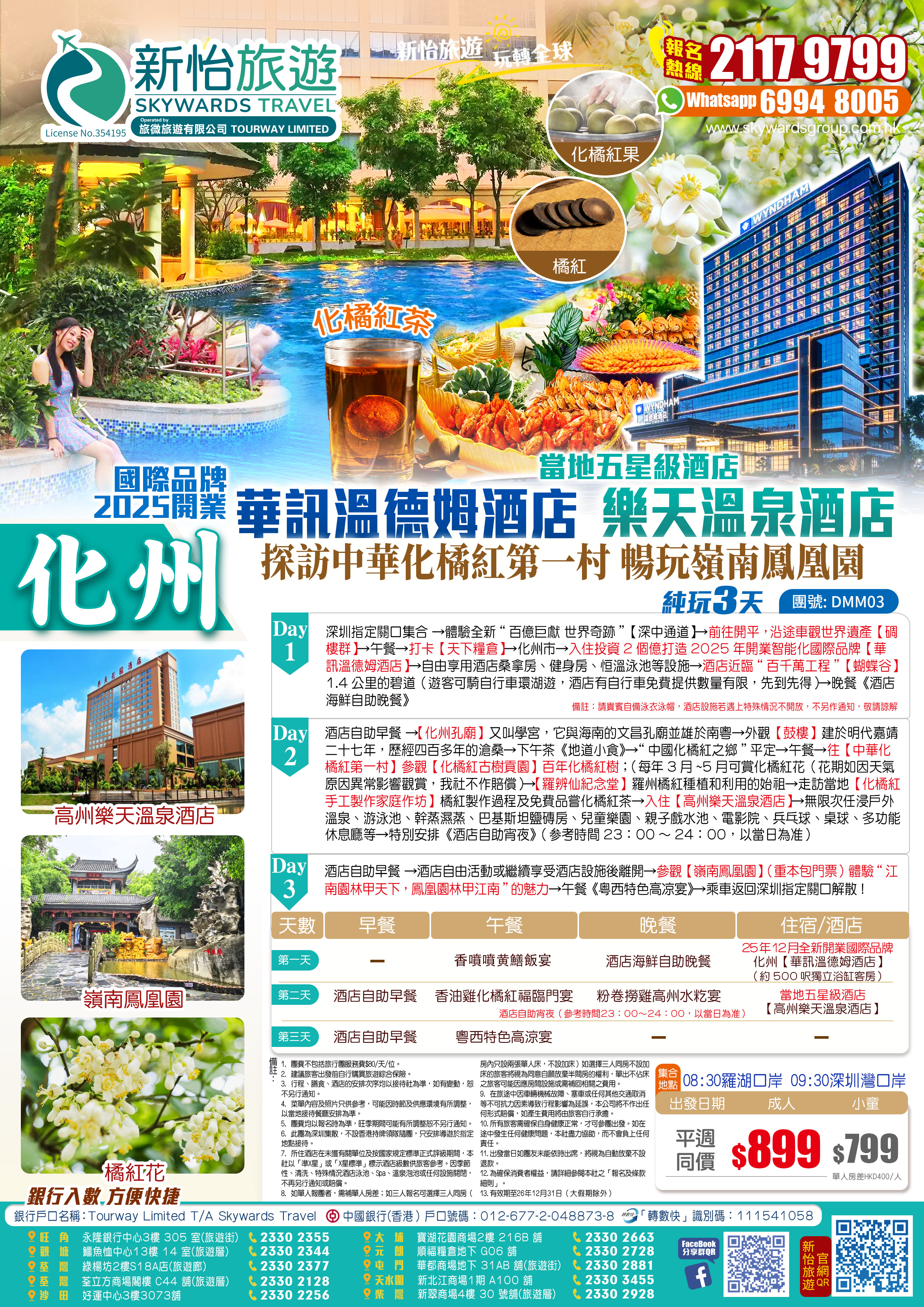 <深中通道>2025年開業化州【華訊溫德姆酒店】嘆酒店自助晚餐+東南亞風情【高州樂天溫泉酒店·泡氡溫泉】 打卡化州【中華化橘紅第一村】 高州【嶺南鳳凰園】純玩 3天