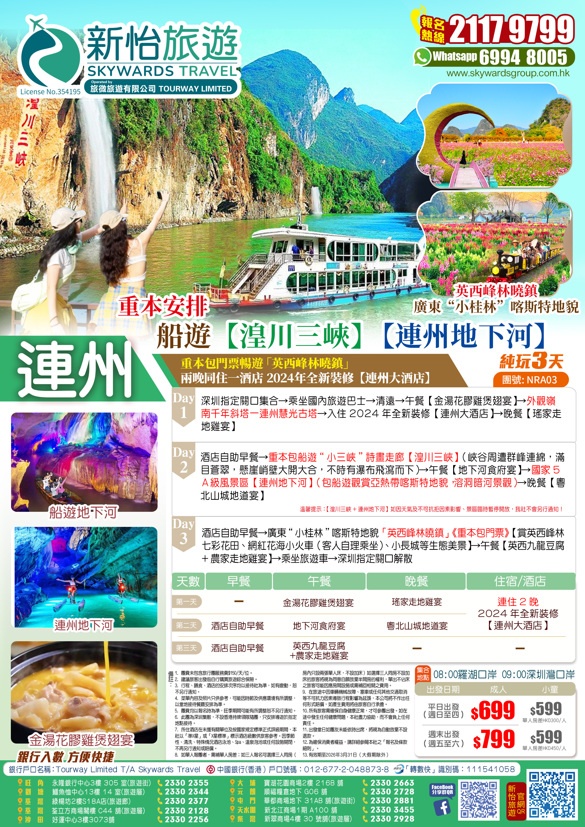 2、【湟川三峽+連州地下河】如因天氣及不可抗拒因素影響、景區臨時暫停開放,我社不會另行通知!