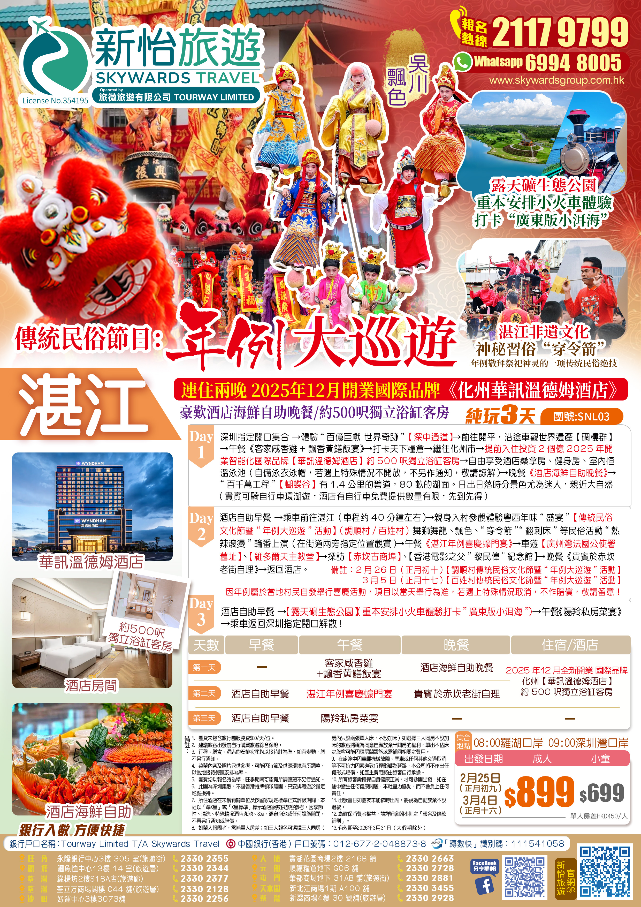 『湛江“年例“』大巡遊<舞獅舞龍、神秘習俗“穿令箭”> 兩晚l連住2025年12月全新開業國際品牌 化州【華訊溫德姆酒店】嘆《酒店海鮮自助晚餐》 《湛江年例喜慶蠔門宴》 純玩3天