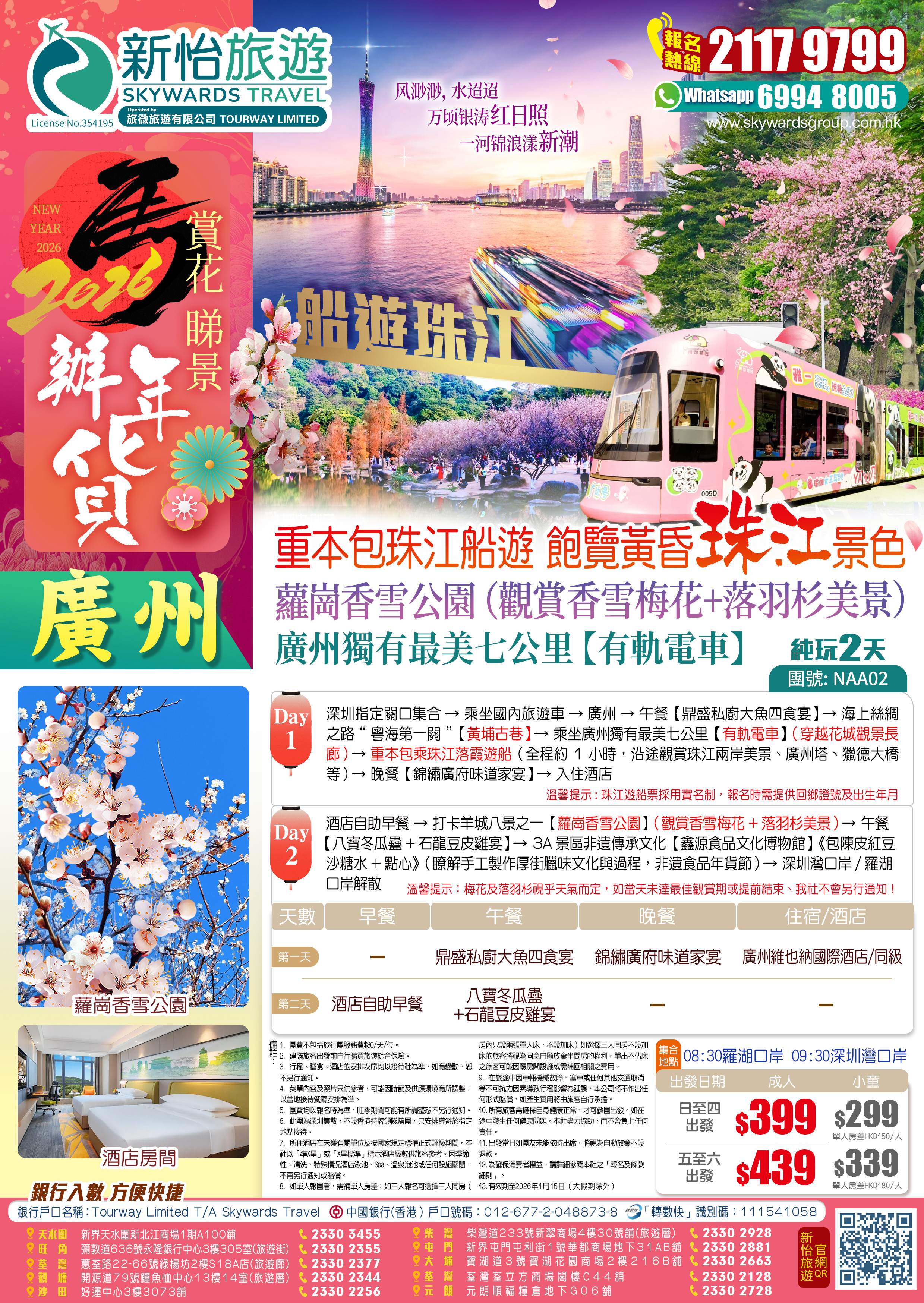 溫馨提示: 珠江遊船票採用實名制,報名時需提供回鄉證號及出生年月