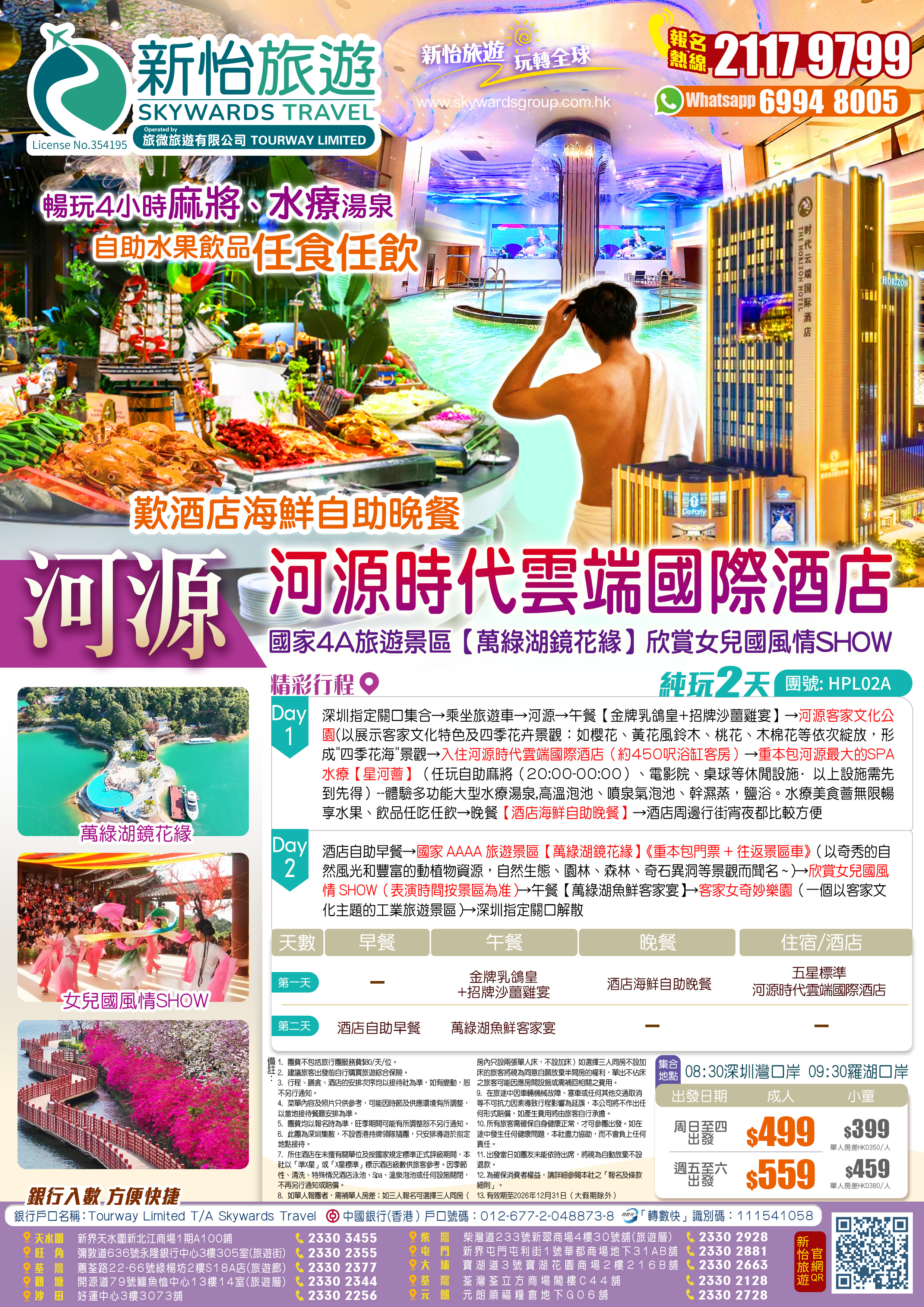 五星標准河源時代雲端國際酒店【歎酒店海鮮自助晚餐】畅玩SPA水療【星河薈】(任玩麻將、水療湯泉)【萬綠湖鏡花緣】欣賞女兒國風情SHOW、客家文化公園(賞四季花卉景觀)純玩2天