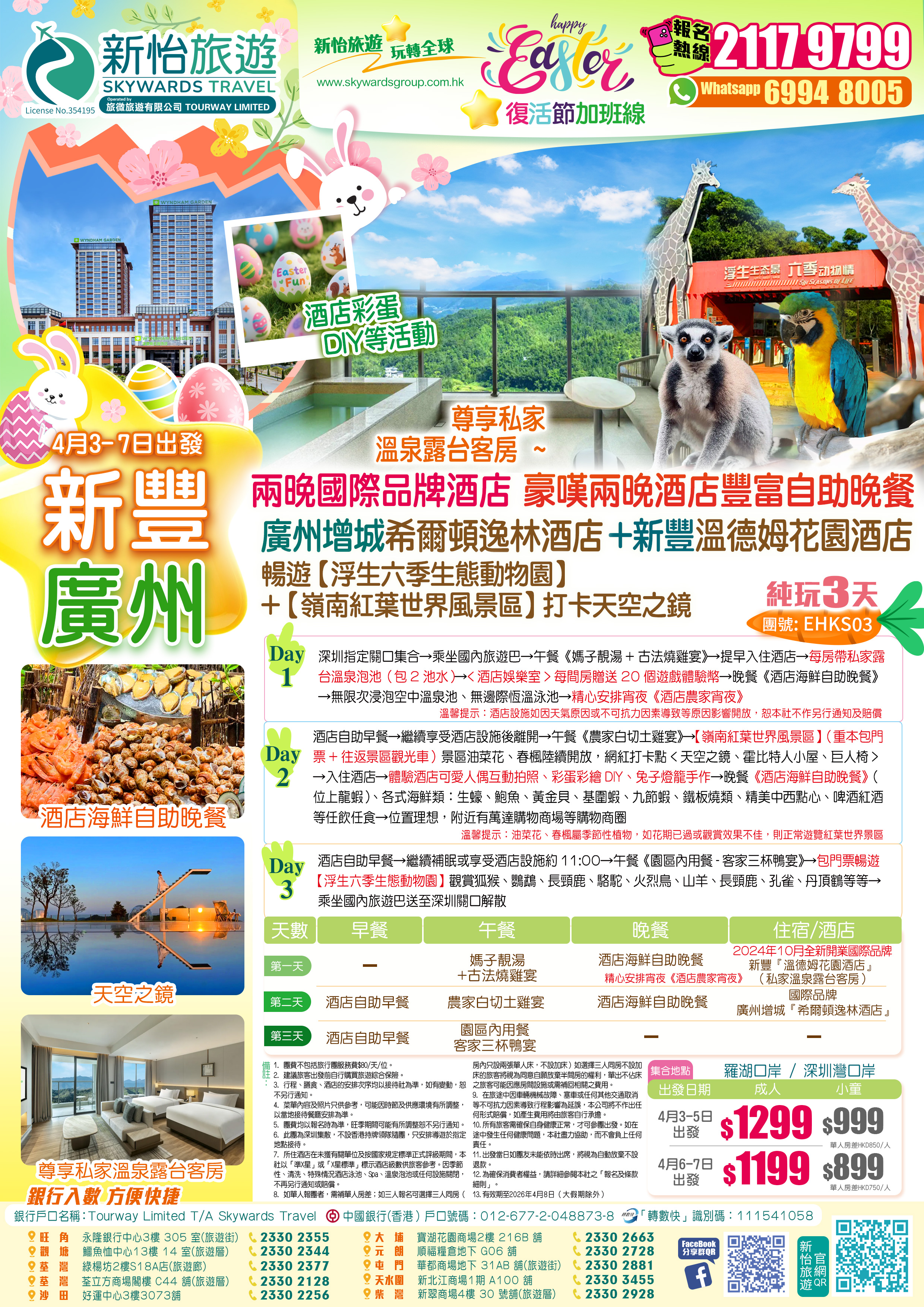 【復活節加班】兩晚國際品牌酒店 廣州增城『希爾頓逸林酒店』+新豐『溫德姆花園酒店』(私家溫泉露台客房)豪嘆兩晚《酒店海鮮自助晚餐》無限次任浸空中溫泉池 暢遊【浮生六季生態動物園】+【嶺南紅葉世界風景區】純玩3天