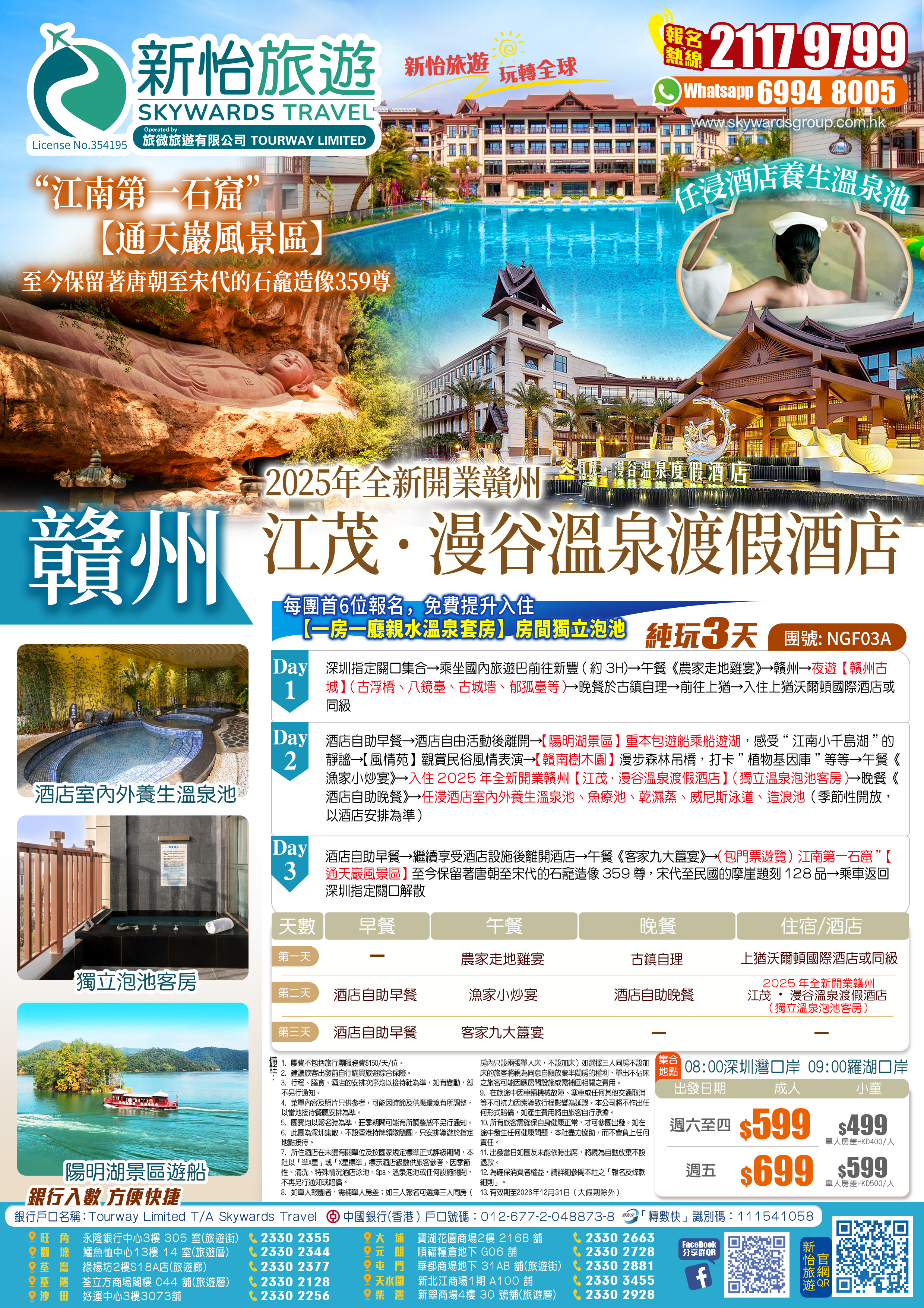 【全免昂貴門票】千年名城【宋城·贛州】+ 江南第一石窟”【通天巖風景區】+“江南小千島湖”【陽明湖景區】重本包遊船、保證入住2025年全新開業贛州【江茂▪漫谷溫泉渡假酒店】(獨立溫泉泡池客房)純玩3天