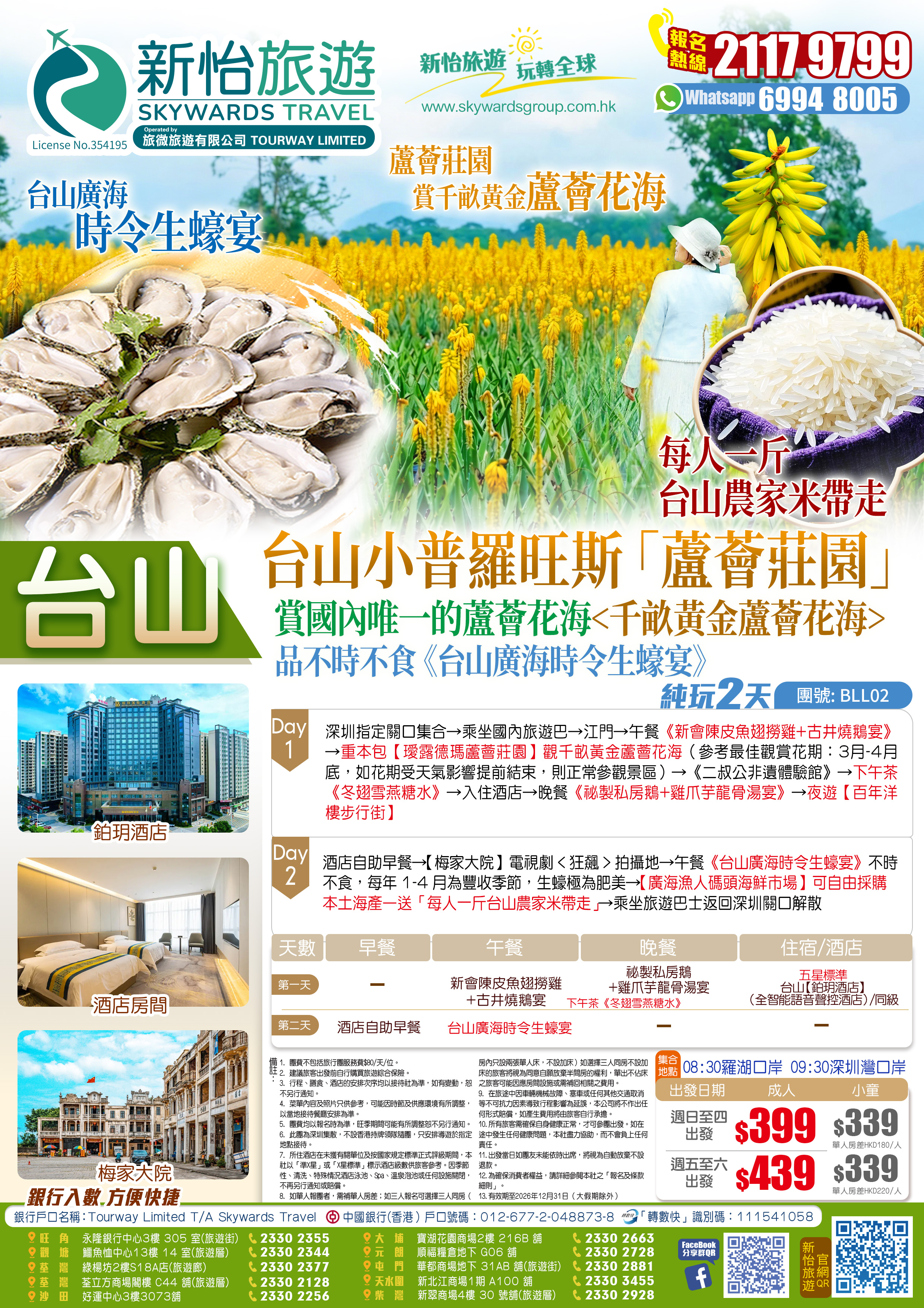 台山"小普羅旺斯"「蘆薈莊園」賞<千畝黃金蘆薈花海> 夜遊【百年洋樓步行街】 不時不食《台山廣海時令生蠔宴》 包每人一斤台山農家米帶走 純玩2天