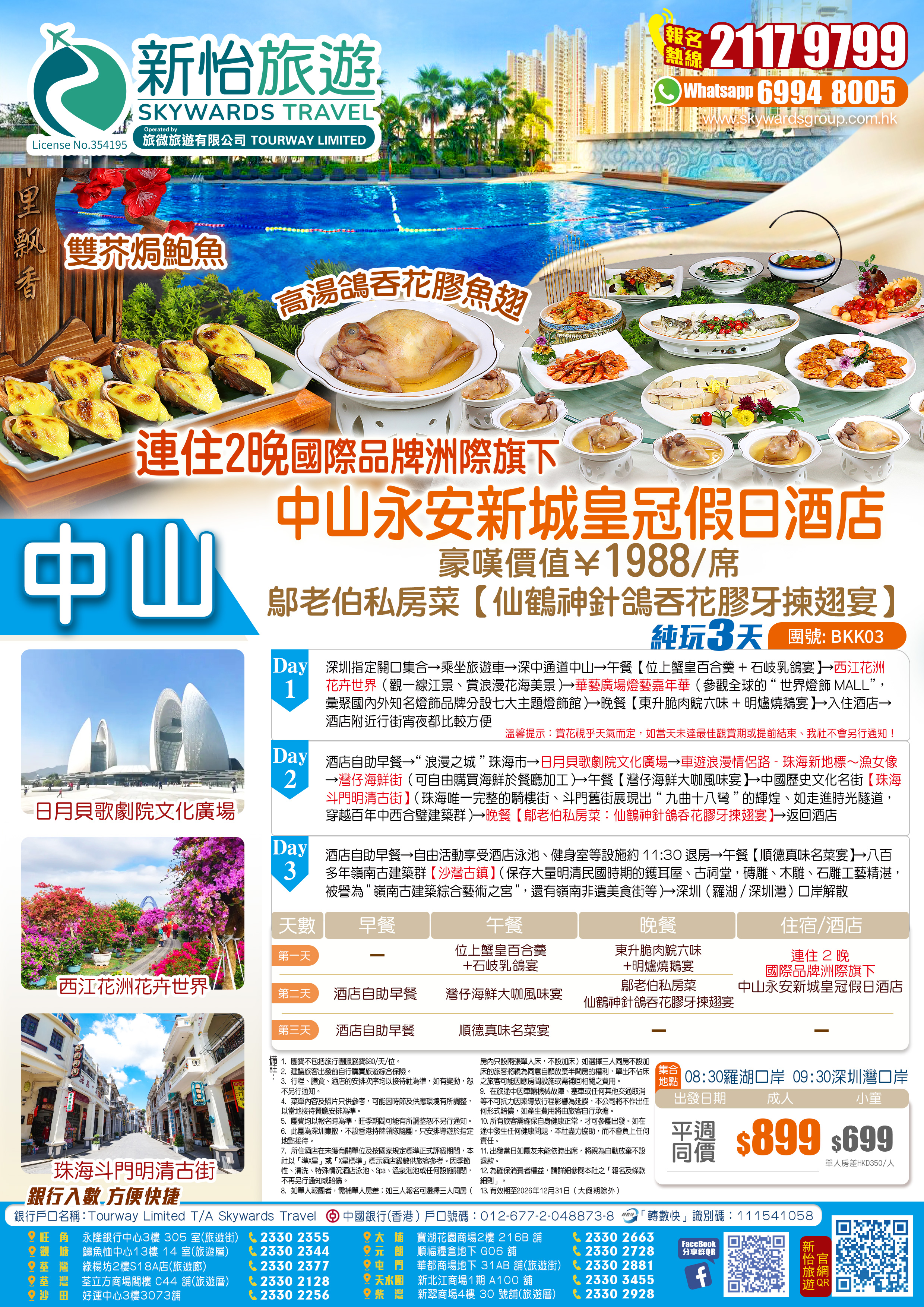 【尋味·大灣區】連住2晚國際品牌洲際旗下【中山永安新城皇冠假日酒店】豪歎價值¥1988/席鄔老伯私房菜【仙鶴神針鴿呑花膠牙揀翅宴】純玩3天