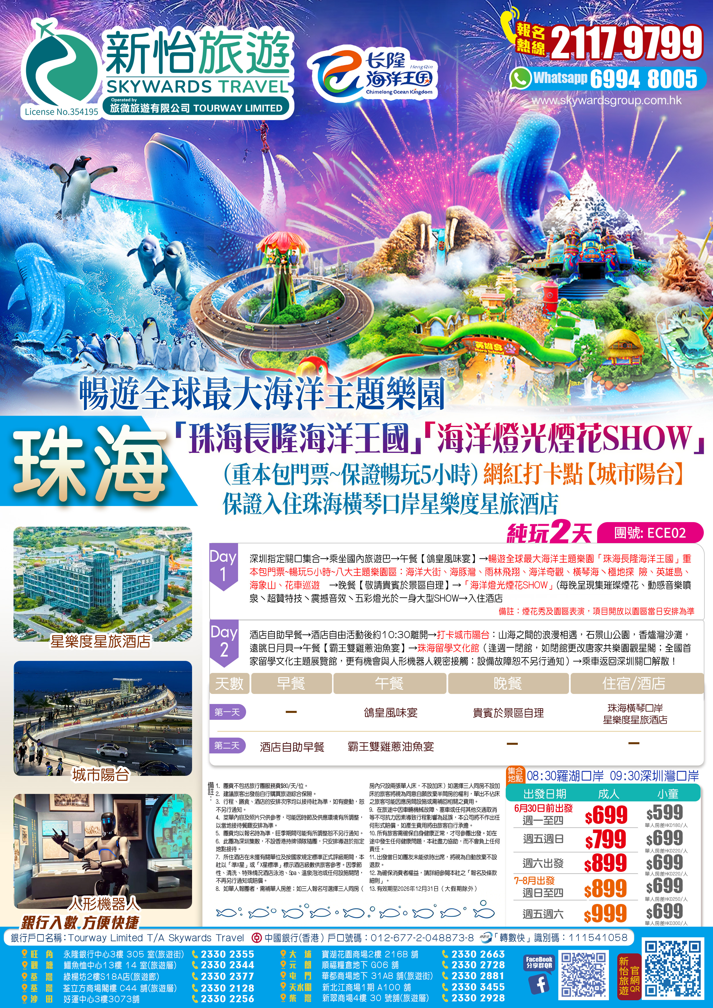 暢遊全球最大海洋主題樂園「珠海長隆海洋王國」「海洋燈光煙花SHOW」(重本包門票~保證暢玩5小時)網紅打卡點【城市陽台】保證入住橫琴口岸星樂度星旅酒店 純玩2天