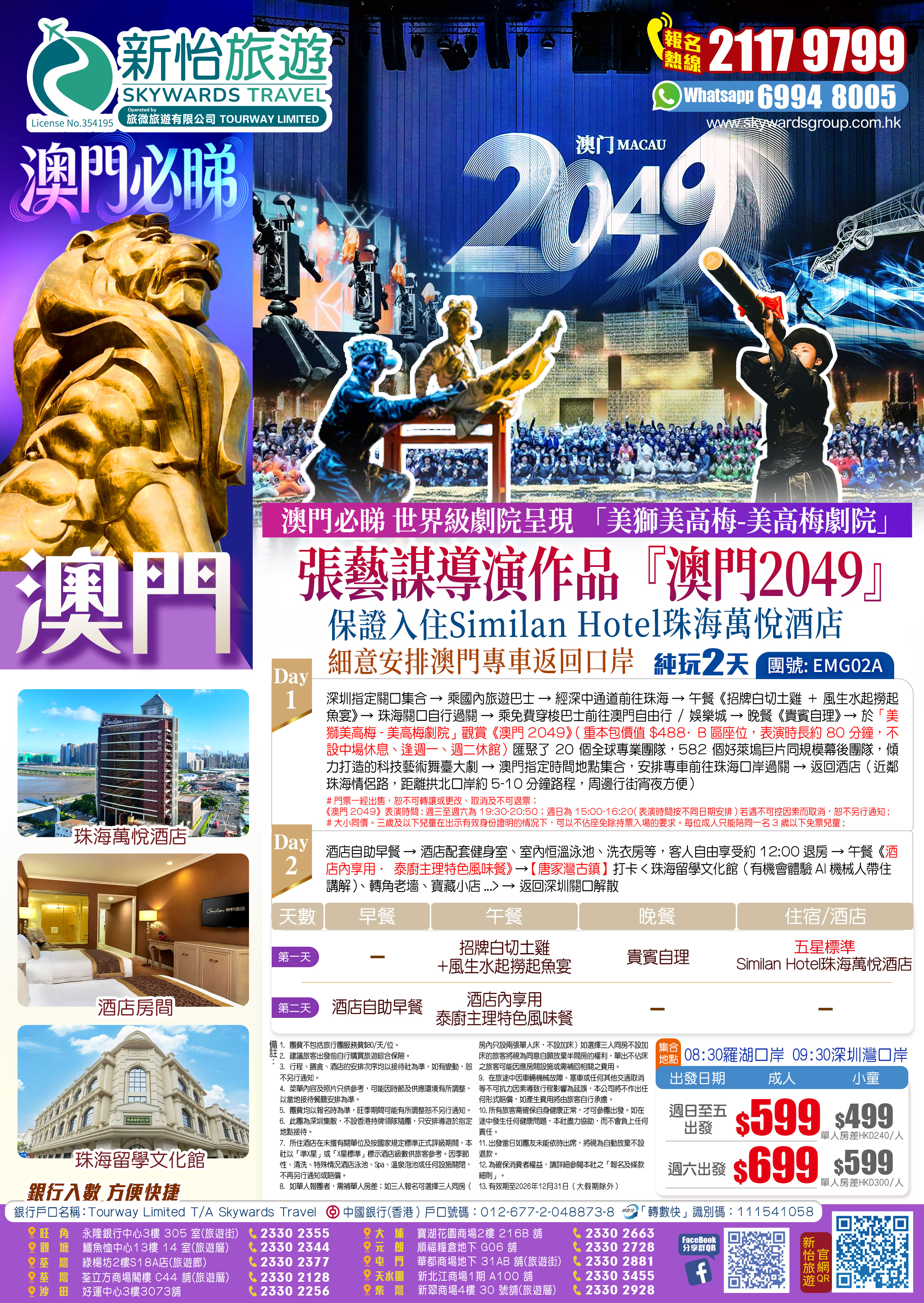 <澳門必睇>世界級劇院呈現『澳門2049』張藝謀導演作品 保證入住Similan Hotel珠海萬悅酒店 純玩2天